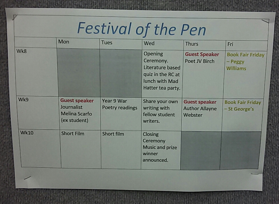 Mine was the first session in the program after its official opening on Wednesday, with other sessions by a journalist and author taking place next week. The school is in a part of Adelaide I’d never visited before and Marika, the English Coordinator who’d contacted me, led me to the Resource Centre where a wonderful space has been created for the festival.