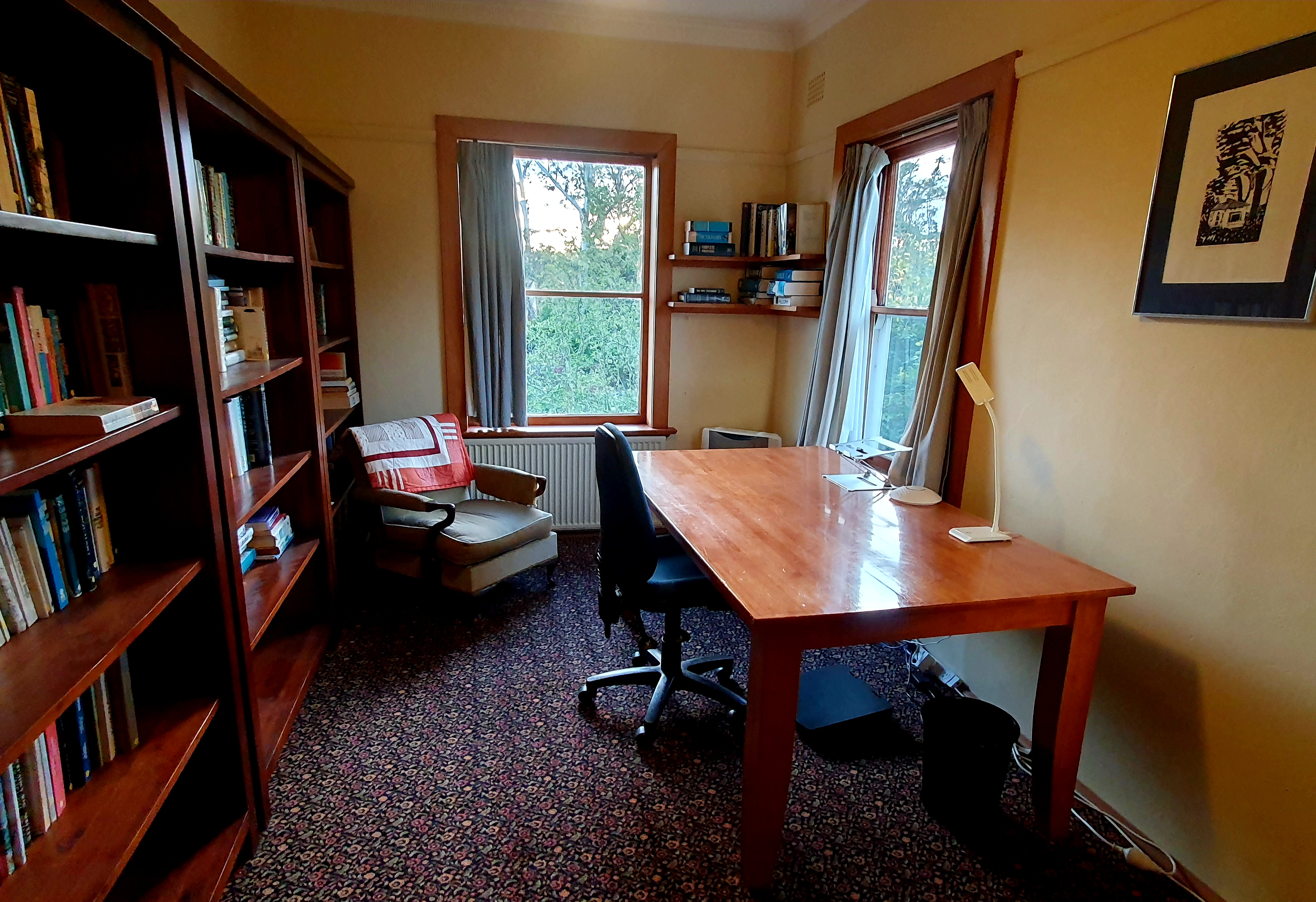 Picture this – chatting with fellow writers in front of a log fire surrounded by books knowing you have the whole week ahead of you to focus on your writing. Needless to say, I didn’t sleep much the first night because of a childlike excitement before a Christmas day morning! I was in the Green Room, one of two rooms in the house (there were six rooms all up) that had its writing space separate from the bedroom.
