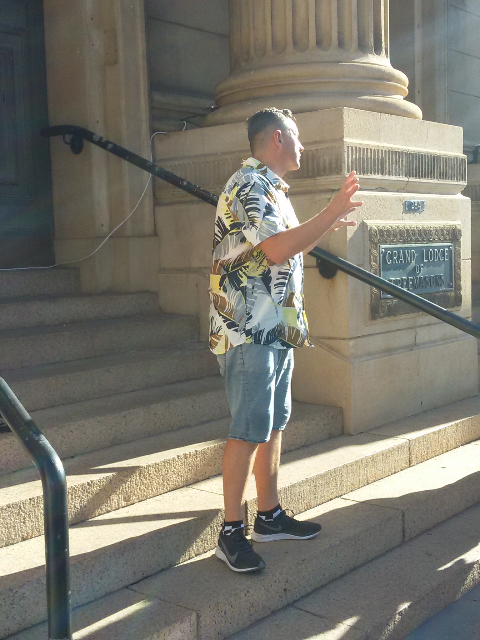 After closing the show with the words of his ex-girlfriend I’m leaving you now, Mickey then treats us to a bonus outside on the steps, incorporating passers-by and even the trams.